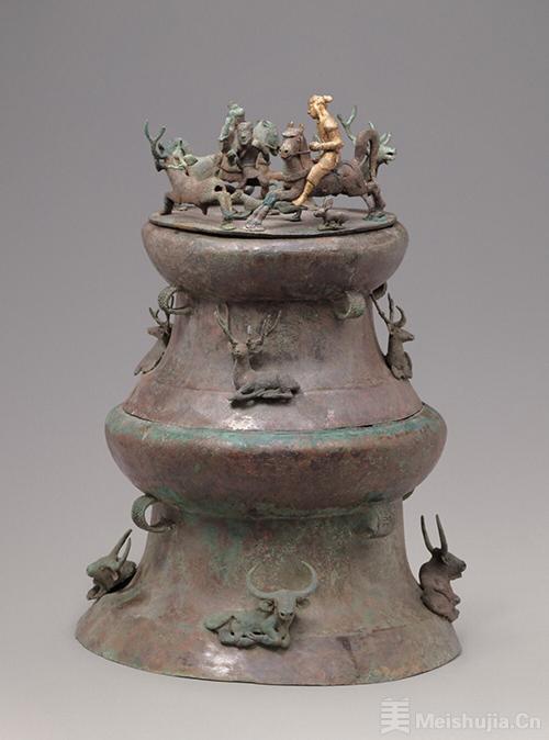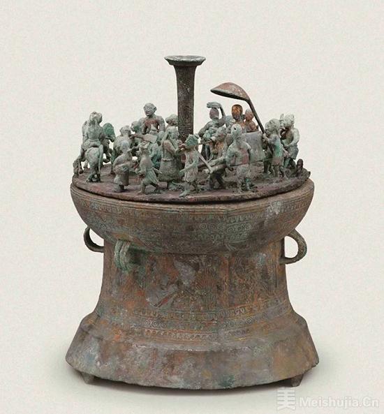 滇国青铜文明高度发达,滇人通过高超的冶铸技艺、写实的表现手法,将社会生活立体铸造在青铜器上,尤以贮贝器、扣饰最具特色。本次展览汇集诸多具代表性的古滇国青铜器,如狩猎场面贮贝器、二人盘舞鎏金青铜扣饰、四舞俑铜鼓等,展现古滇国的政治、经济、军事、文化等方方面面。
