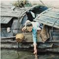 潘鸿海 水上人家 油画 在国内的画家中,提起画水,我们脑海中肯定会浮现一个人的身影——潘鸿海,一位富有抒情气质的艺术家,他的油画作品对江南气质有着极具个人色彩的洞见。他把来自西方的写实技法与中国古典美学的诗性意蕴相结合,来表达具有东方特色及审美的中国当代乡土风情,深入发掘江南水乡的人文情致与田园韵味,淬炼出具有东方诗意的作品。 潘鸿海出生于江南水乡,对水的喜好与生俱来而成为一种宿命,