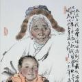 祖孙俩2015年作 色纸托片 138.5×51cm 高博专攻人物。他的画清丽、脱俗充满生机,其特点是人物造型准确、面容端庄、目光传神。从作品中可以看出他于绘画强调两个基础:第一是给画基础,第二是文化基础。所以,他能自始至终从实践角度出发,对现代中国画的各科风格、形式语言以及技法理论进行挖掘、整理和自我建构;从而使他的画面的图像形态,一方面是从亲身的生活经历中提炼出来的,另一方面则是从自我生命存在与文化传统