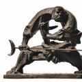 ▲ 寒林放马(国画) 129.4×62.4厘米 1888年 任伯年 中国美术馆藏 任伯年(1840—1896),初名润,字次远,号小楼,后改名颐,字伯年,浙江山阴人,清末“海上画派”巨擘。任伯年早年师从任熊、任薰,也深受陈洪绶的影响,而后融汇诸家之长,大胆吸收西洋绘画的速写与设色技法,并贯通民间写真术,形成了造型精准、笔意生动、雅俗共赏的独特风格。